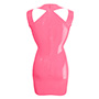 A unique spin on this mini dress features a sleeveless design with a unique focus point created by angular cut outs over the shoulders.