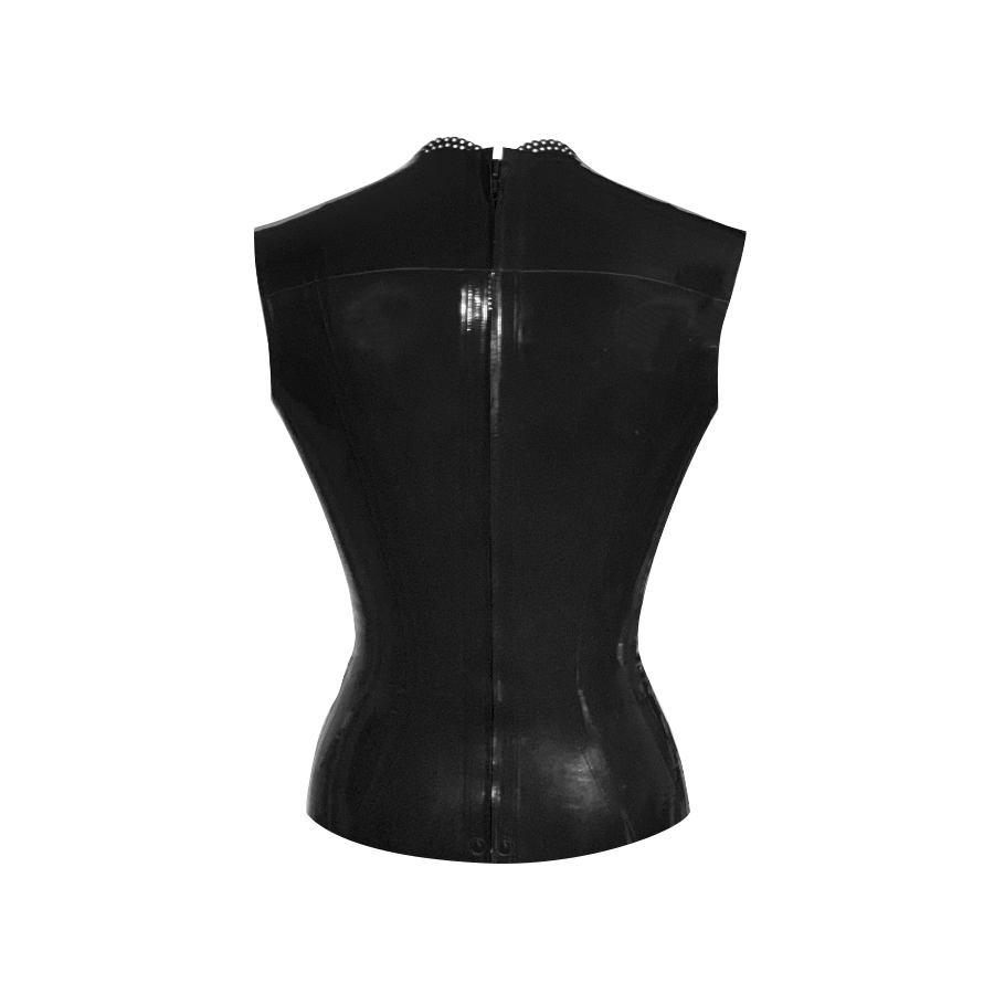 The top fits with a full zip fastening up the back to neck height.